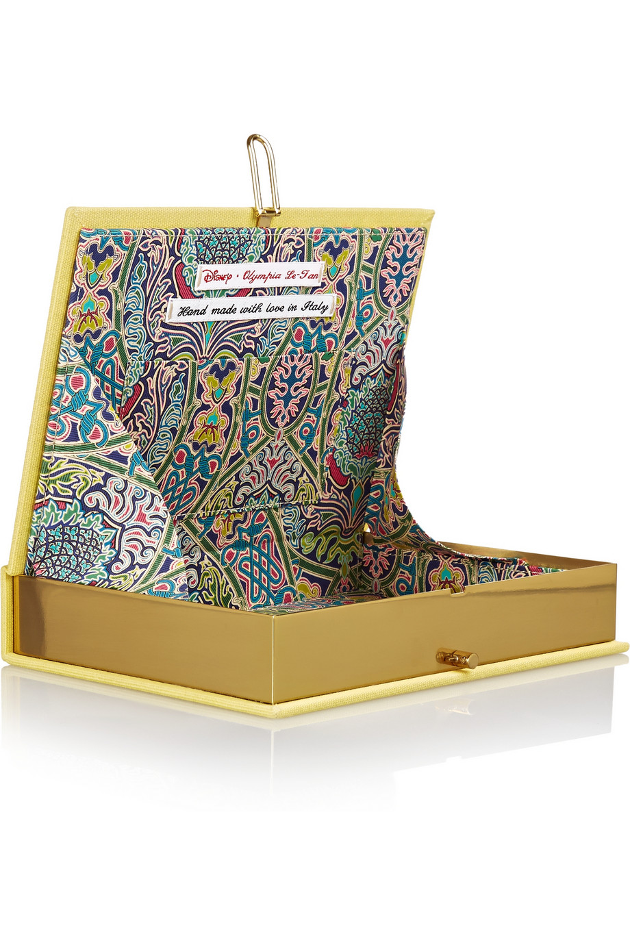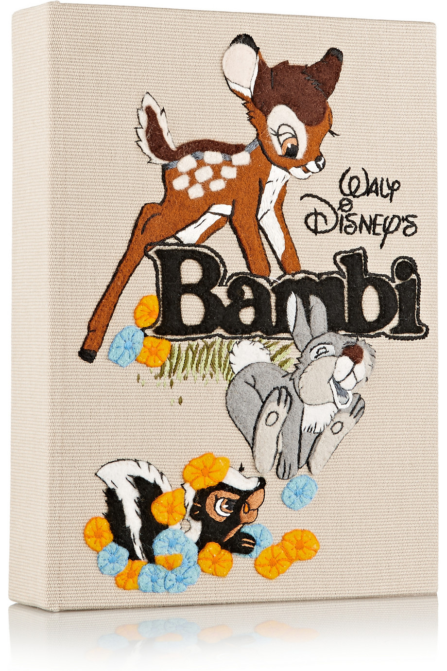 Is so easy to fall in love with this new bags collection from Olympia Le-Tan! This limited edition clutches celebrate the characters from classic Disney films. Handcrafted in Italy from light-mushroom cotton-canvas appliquéd with felt, this embroidered style is designed with a sleek gold-tone frame and opens to a colorful floral-print interior.